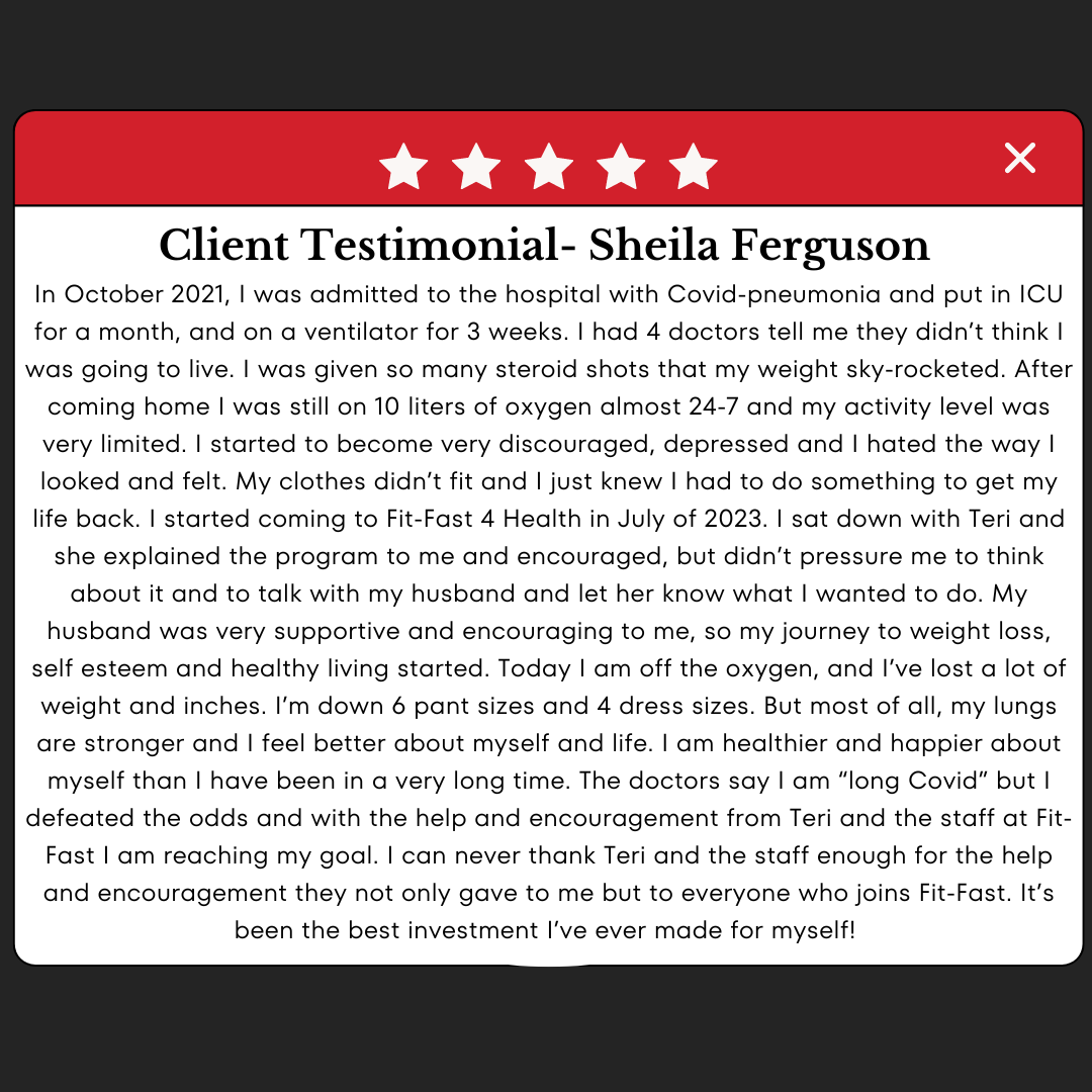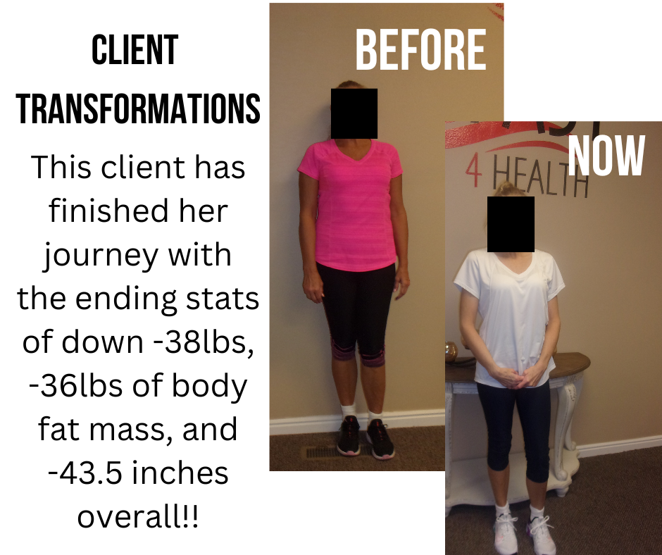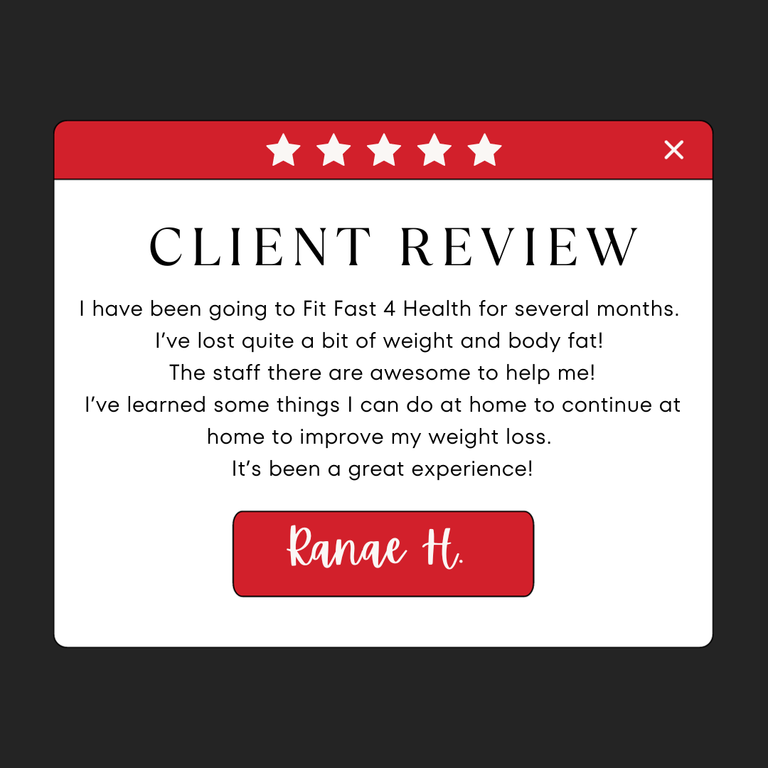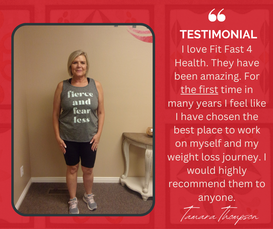 Enjoy our client testimonials and find inspiration to start your own weight loss program. Call now for a free consultation and a computerized body analysis from locally and family-owned Fit Fast 4 Health.